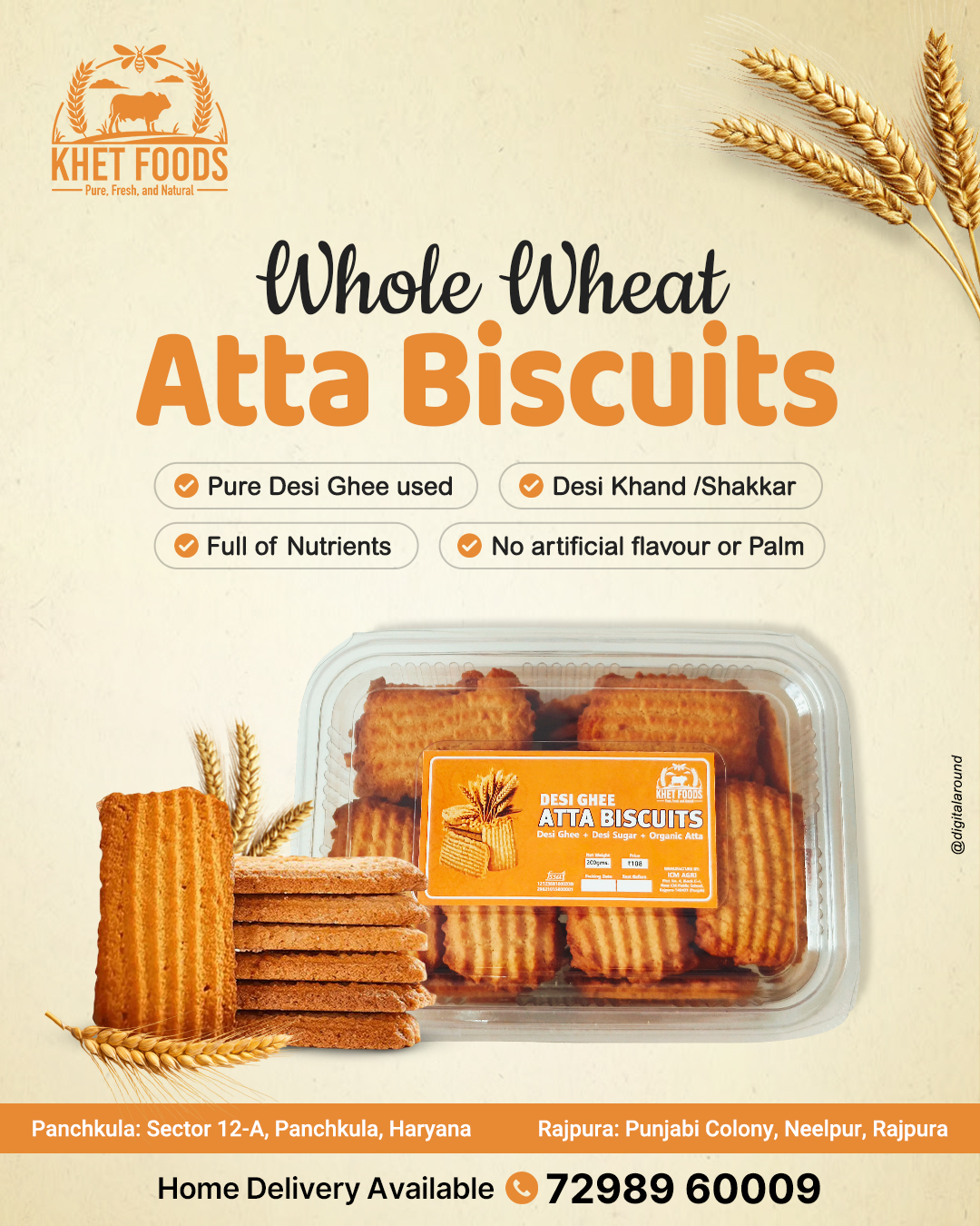 Khet Foods Biscuits are crafted using carefully selected ingredients to deliver great taste with wholesome nutrition. Made with high-quality grains and natural ingredients, our biscuits are free from harmful preservatives and artificial flavors.